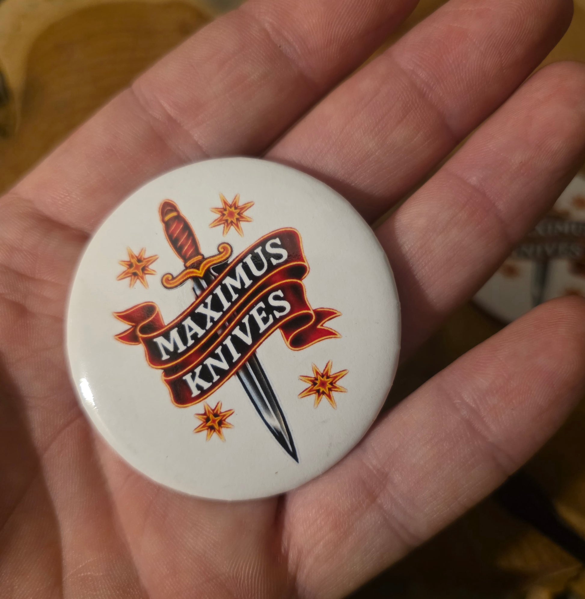 2.25" super cool button. Put it on your back pack or favorite jacket! Use the back for signaling for help or make the needle in to a hook. Or just look cool!